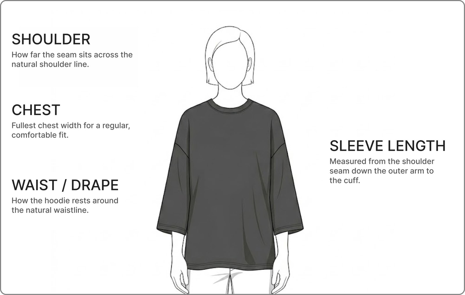 Measure from the shoulder seam outward to where the sleeve naturally falls on an oversized fit.
